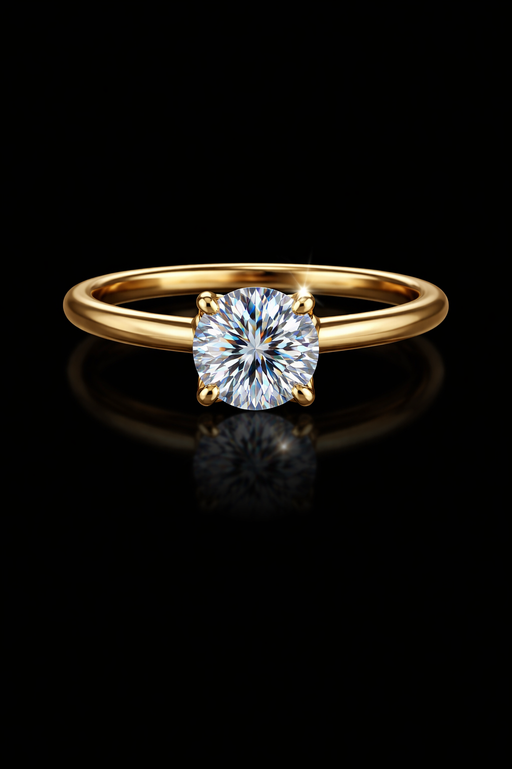 Round brilliant solitaire on a classic yellow gold band — timeless elegance, bold presence.